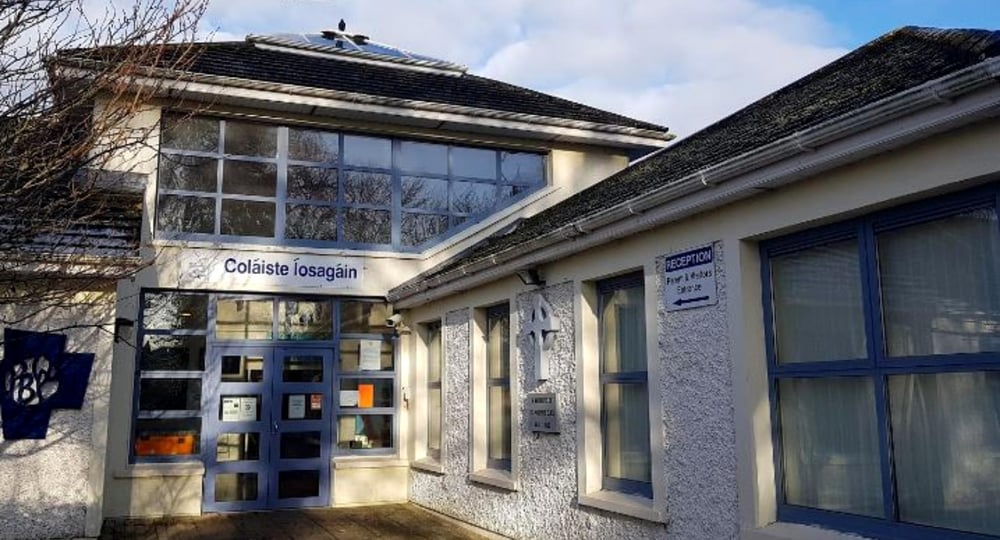 Die Coláiste Íosagáin begrüßt täglich rund 1.000 Jugendliche. Beim Betreten des Schulgeländes werden Dir sofort die vielen Flaggen auffallen: Grün steht für die Nachhaltigkeit der Schule und Bernstein symbolisiert den Beitrag zum Thema psychische Gesundheit.
