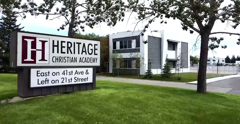 Tauche ein in die faszinierende Welt der Heritage Christian Academy. Das weitläufige Schulgelände befindet sich am Rande des Flughafens Calgary, umgeben von Golfplätzen, einem Fitnessstudio mit Kletterwand und dem aufregenden Flugmuseum.
