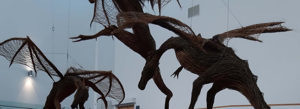 Der Tag nach Belfast, welcher von einer Partnerorganisation Kulturwerke-Deutschlands - Educations organisiert wurde, startete für meine Gastschwester Laura und mich um 8 Uhr morgens. Laura und ich machten uns fertig, aßen etwas und machten uns dann auf den Weg zu dem Bus der uns nach Belfast bringen sollte. Im Bus trafen wir andere Austauschschüler*innen, welche nicht aus unser Kleinstadt kommen, deshalb unterhielten wir uns ein bisschen mit ihnen und tauschten Erfahrungen aus. Unser erstes Ziel in Belfast war das Naturkundemuseum der Stadt, welches wir nach einer 2 stündigen Fahrt erreichten. Die Artefakte und das Gebäude des Naturkundemuseums waren einfach nur atemberaubend. Neben Ausstellungen der Geschichte Irlands (vor allem die Steinzeit-Bronzezeit und die Aufstände der 90er Jahre) gab es auch eine Ausstellung über das alte Ägypten, welche mein persönliches Highlight war. Das Gebäude des Museums darf man jedoch auch nicht unerwähnt lassen – eine große Halle die mit 3 riesigen, hängenden Drachen in der Mitte dekoriert ist. Um diese noch besser betrachten zu können gibt es Treppen welche bis zu einer Terrasse, auf der Höhe der Drachen, entlang der Hallenwände führen.